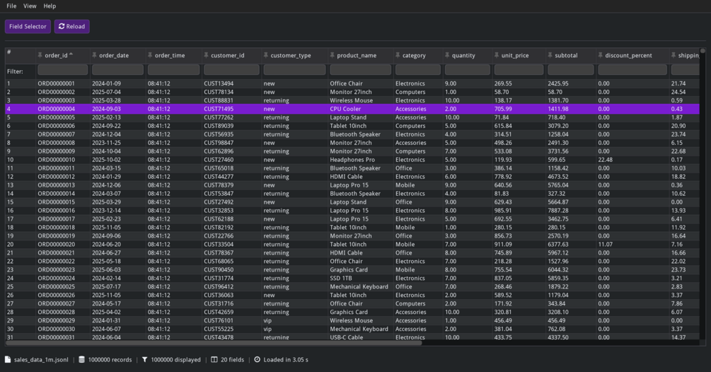 Lightning-fast JSONL viewer for Windows. Handle millions of rows, filter nested objects with dot notation, analyze logs instantly. Native app, not Electron.